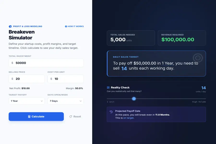 See exactly how much you need to sell to cover your costs and start making real progress. Helps you price smarter and make decisions with confidence.